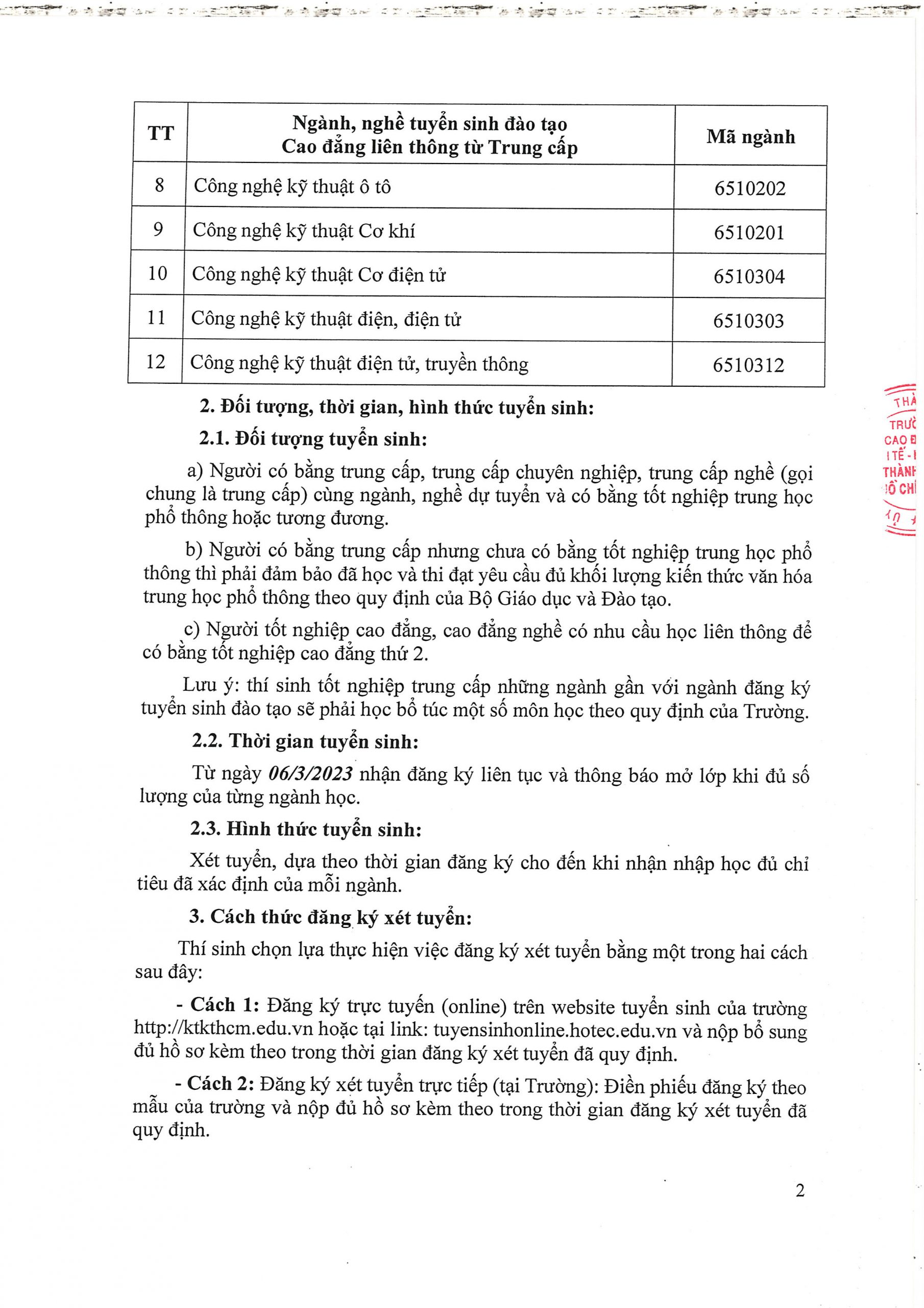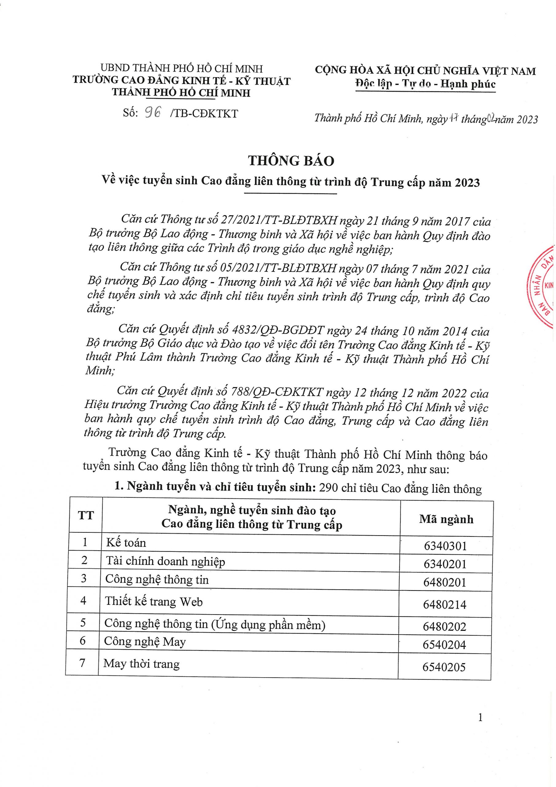 Thông báo Tuyển sinh bậc Cao đẳng Liên thông từ trình độ Trung cấp năm 2023 Thông báo Tuyển sinh bậc Trung cấp, hệ chính quy năm 2023 Thông báo Tuyển sinh bậc Cao đẳng, hệ chính quy năm 2023